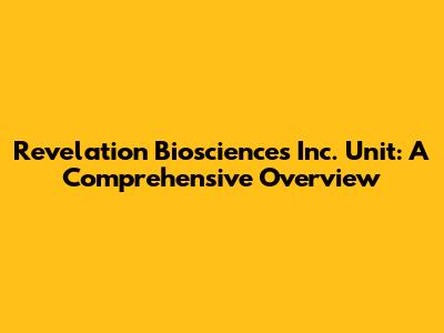 Hey everyone! Let's dive deep into Revelation Biosciences Inc. Unit, a fascinating topic that's been buzzing around, especially for those keeping an eye on biotech and investment opportunities. Understanding this unit involves exploring its structure, the elements it comprises, and its potential impact. So, grab your favorite drink, and let's get started!