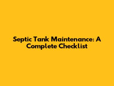 Septic Tank Maintenance Checklist