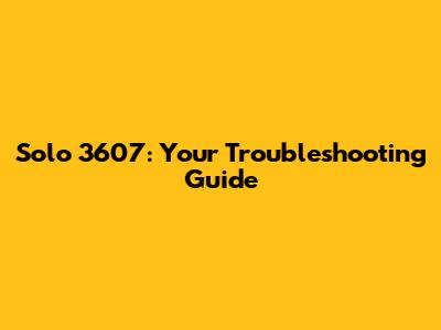 Solo 3607: Your Troubleshooting Guide
