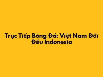 Trực Tiếp Bóng Đá: Việt Nam Đối Đầu Indonesia