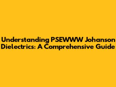 Understanding PSEWWW Johanson Dielectrics: A Comprehensive Guide