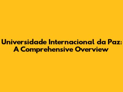 Universidade Internacional Da Paz: A Comprehensive Overview