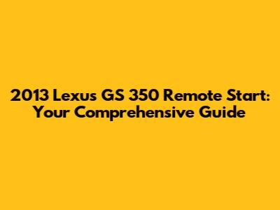 Unlock Your 2013 Lexus GS 350: Remote Start Guide