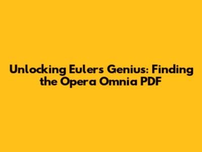 Unlocking Euler's Genius: Finding The Opera Omnia PDF
