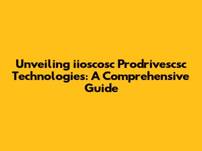 Unveiling Iioscosc Prodrivescsc Technologies: A Comprehensive Guide