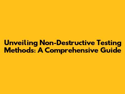 Unveiling Non-Destructive Testing Methods: A Comprehensive Guide