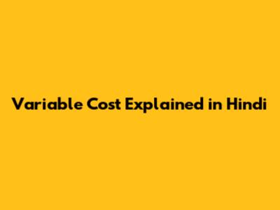 Variable Cost Explained In Hindi